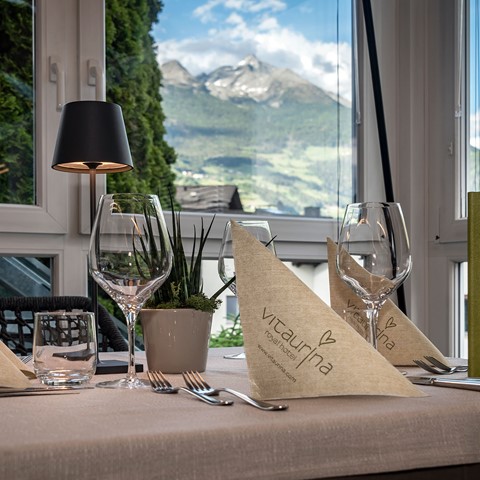 Nach dem Abendessen in unseren rustikal-modernen Speisesälen mit musikalischer Begleitung sollten Sie sich noch einen Absacker – einen typischen Tiroler Schnaps, einen Grappa oder einen sardischen Mirto auf unserer gemütlichen Terrasse genehmigen.