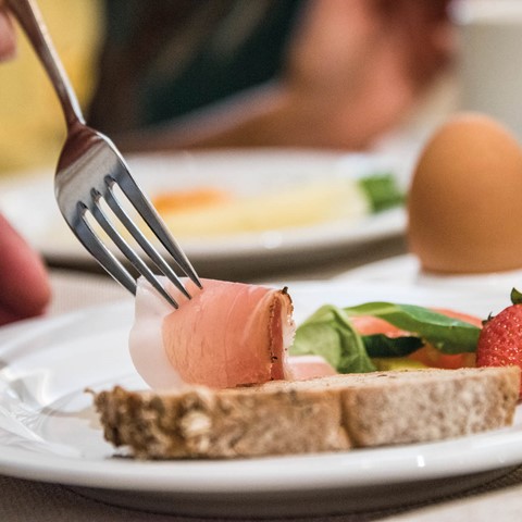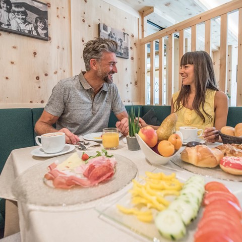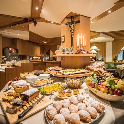 Your culinary holiday in South Tyrol starts with our half board in the morning – a substantial and healthy breakfast from the large buffet with fresh products of the region such as: crunchy bread, “energy corner” with cereals and grains, different dairy products, cold cuts and cheese, fresh eggs and homemade delicacies such as jams, sweets and cornetti – croissants, freshly pressed juices and tasty Italian coffee in all its variants – espresso, macchiato, cappuccino, latte macchiato from our automatic coffee machine. You may have breakfast like you use to, or you can choose between an abundant, continental breakfast with many savoury and sweet proposals or a typical Italian breakfast with cornetto, cappuccino and orange juice – just as the fancy takes you!