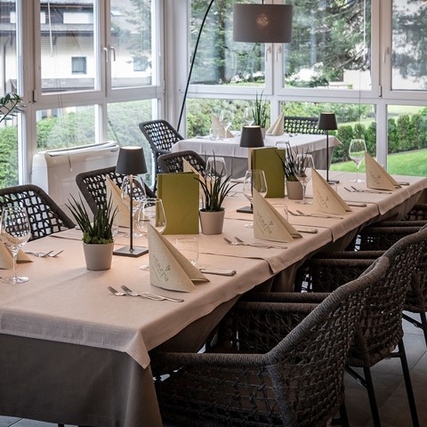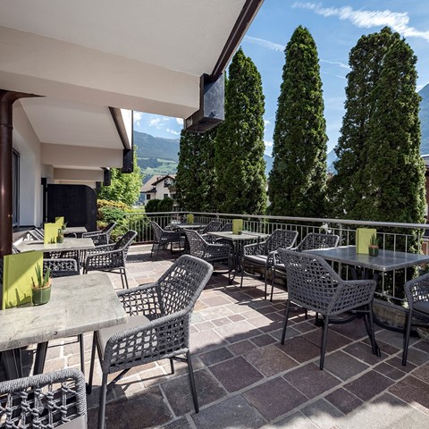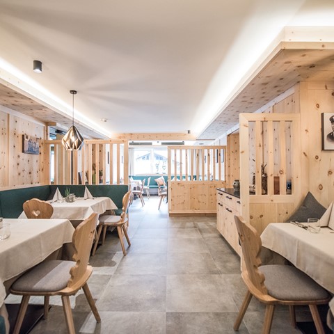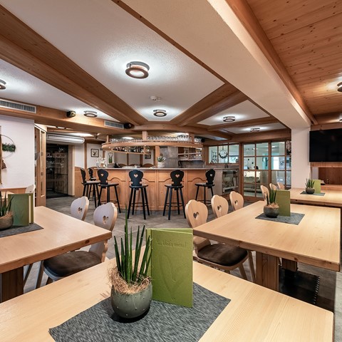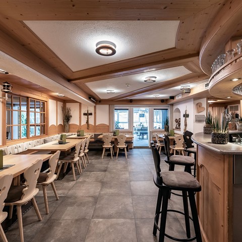 We furnished the premises by purpose with many natural materials, in order to create a pleasant and personal atmosphere. Look forward to the newly arranged dining room and winter sun parlour with panoramic views, the stylish bar, two new, traditional Tyrolean parlours, the cosy terrace and a small yet nice garden with comfortable sun loungers. For those guests who like to have a smoke at times, we arranged an inviting smoking room.