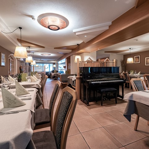 In the evening we will pamper you with a 4 course menu at choice accompanied by a large salad and vegetable buffet including flavoursome dressings and oils or a predefined 5 course special menu and children’s dishes for our small guests. Choose some good wine to top off your dinner from our selection of fine Italian and South Tyrolean wines.